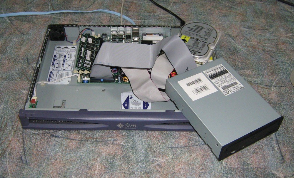 There is no provision for installing a CDROM drive in the X1; the systems are meant to have the OS installed or reinstalled over the network connection using another Solaris system as a Jumpstart server. However, it is possible to attach an IDE/ATAPI CDROM drive and configure the NVRAM to recognize it via Open Boot PROM configuration commands.